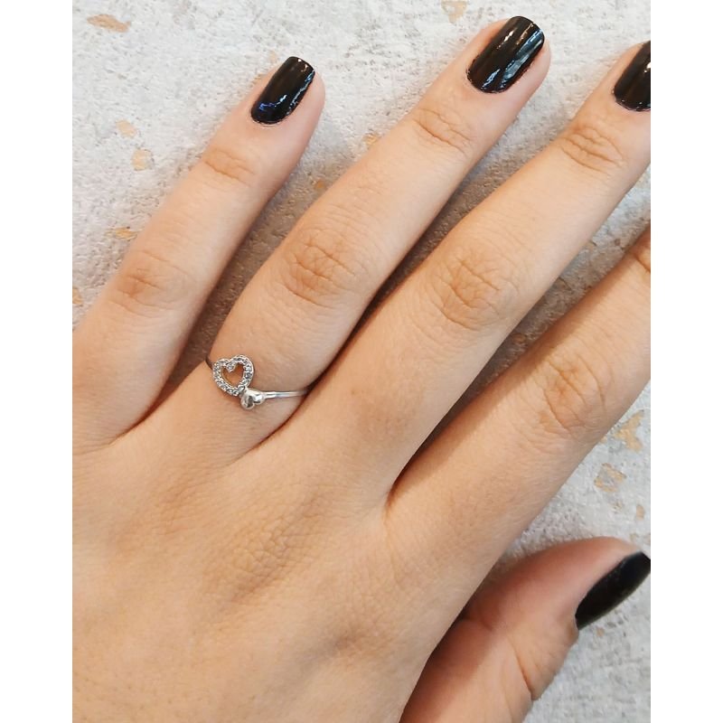 Delicado e cheio de charme, este anel em prata 925 possui um coração vazado com detalhes em zircônias que trazem brilho e romantismo. Uma joia versátil, ideal para usar sozinha ou em combinações. Antialérgico e confortável para o dia a dia.