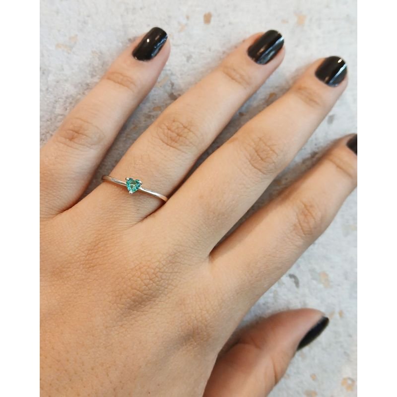 Romântico e delicado, este anel em prata 925 possui uma pedra em formato de coração na cor turmalina paraíba, que transmite leveza e frescor. Uma joia minimalista, perfeita para uso diário ou para presentear com carinho.