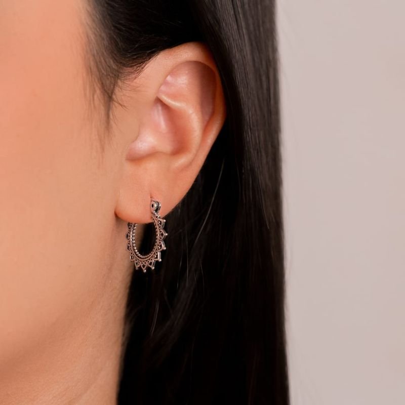 Encante-se com a beleza artesanal desta argola em Prata 925, que une elegância e tradição em um único acessório. Com design detalhado e acabamento envelhecido, essa peça apresenta delicados ornamentos em formato de pequenos corações e arabescos ao redor do aro, evocando um estilo boho e atemporal. Ideal para quem busca autenticidade e personalidade em cada detalhe, essa argola é leve, versátil e perfeita para compor looks casuais ou sofisticados com um toque de originalidade.