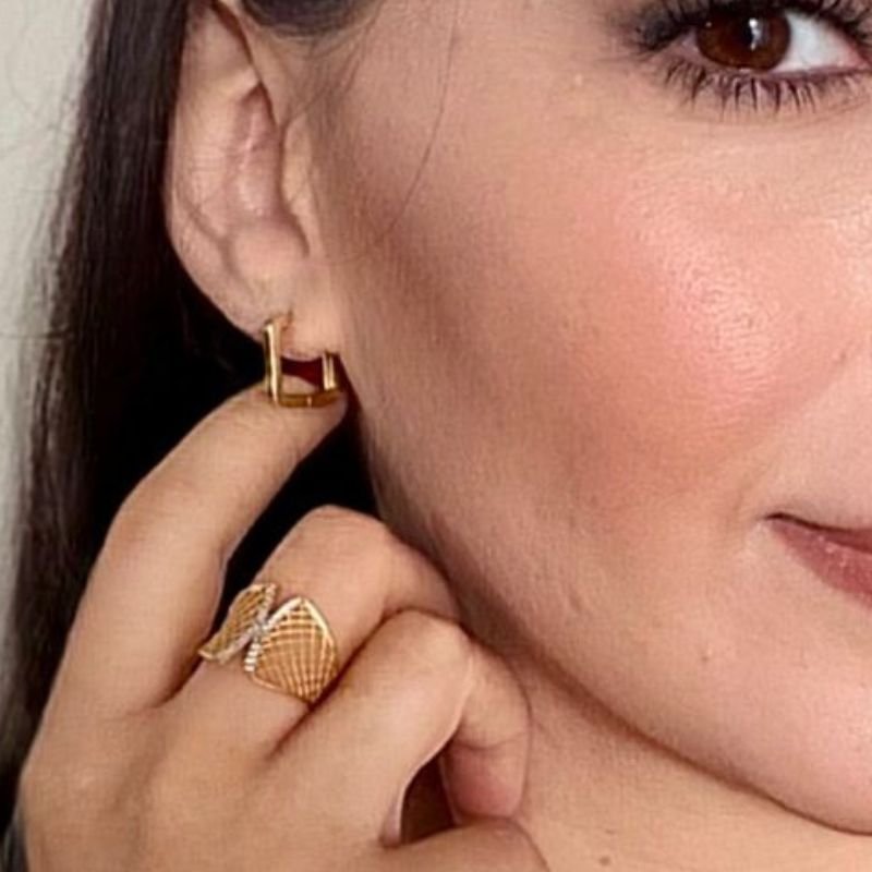 Moderno e sofisticado, o brinco argola retangular folheado a ouro 18k é a escolha ideal para quem busca um acessório atual e versátil. Seu design geométrico traz um toque contemporâneo ao visual, enquanto o acabamento polido garante brilho intenso e elegante.