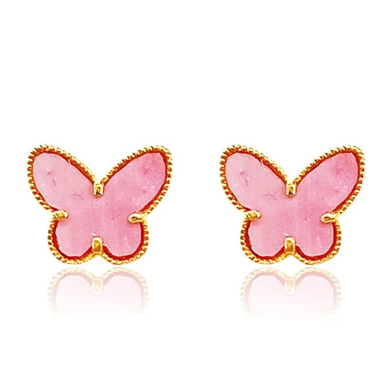 Encante-se com a delicadeza deste brinco folheado a ouro em formato de borboleta rosa, símbolo de leveza e alegria. Seu tom suave e feminino traz um toque de cor e romantismo, perfeito para iluminar o visual com charme e elegância.