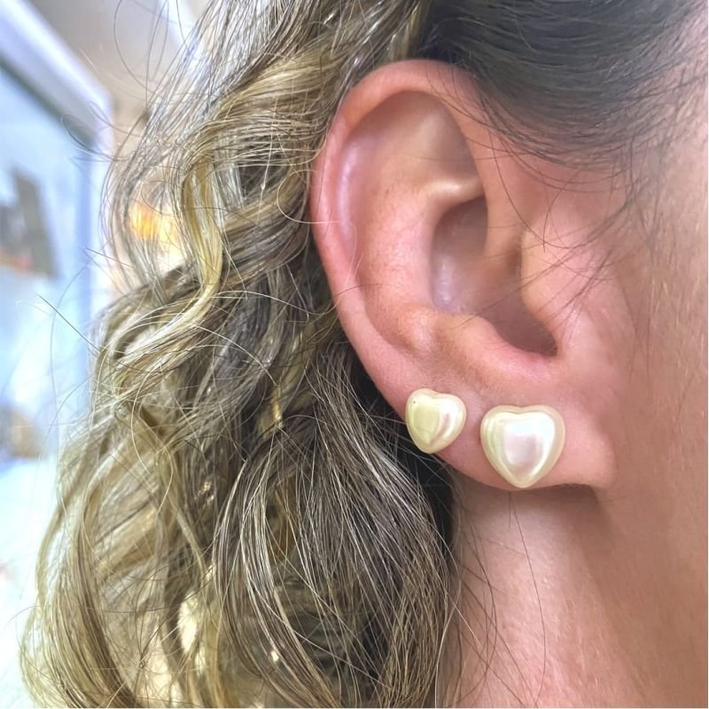 Apaixone-se pelo encanto do Brinco Coração Perolado 🤍