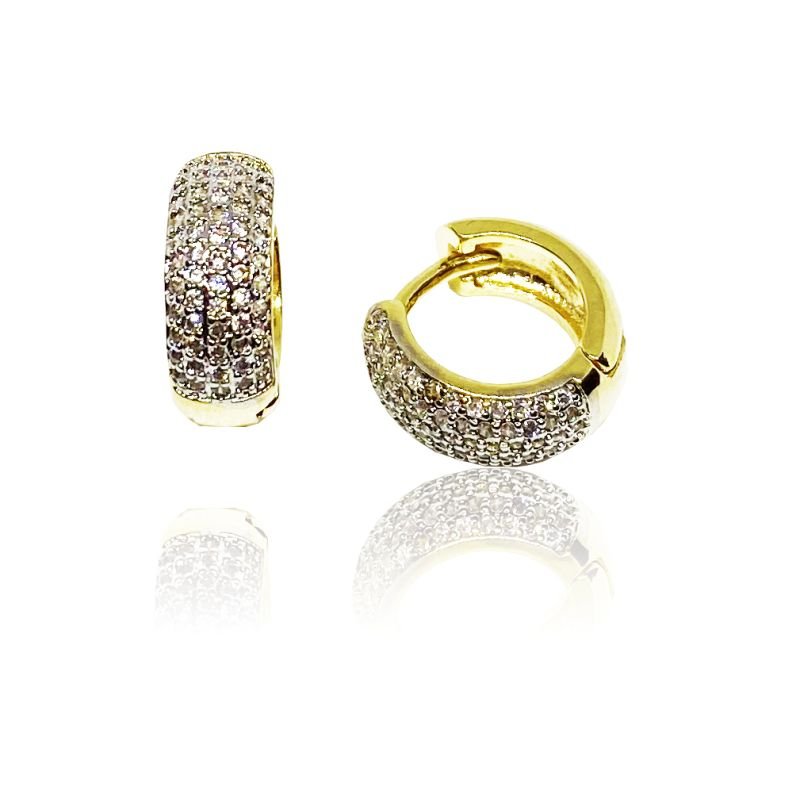 Elegância e brilho em uma peça versátil! Esse brinco de argola é folheado a ouro 18K e possui aplicação de zircônias cravejadas que garantem um efeito luminoso e sofisticado. Antialérgico, é confortável para uso diário e ideal para quem busca um acessório moderno, atemporal e cheio de glamour.