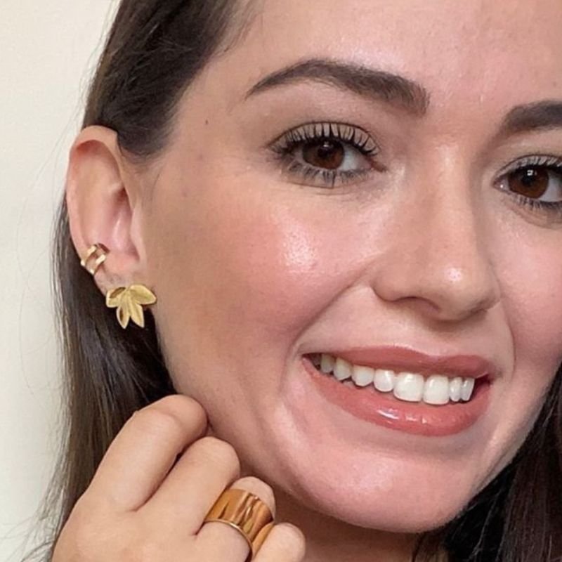 Delicado e cheio de charme, o brinco em formato de folhas é a escolha perfeita para quem ama joias com inspiração na natureza. Seu design orgânico traz leveza e sofisticação, com acabamento polido que garante brilho intenso e um visual elegante.