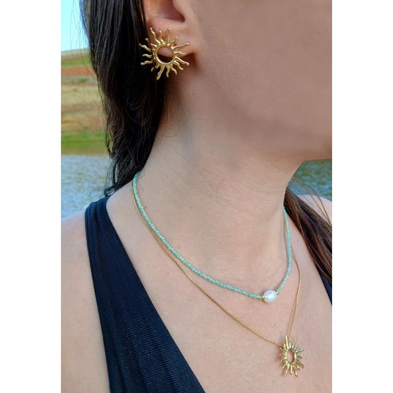Perfeito para quem ama acessórios com significado, o sol simboliza luz, força e vitalidade, tornando este conjunto ideal para compor looks leves do dia a dia ou produções mais elaboradas, especialmente nas estações mais quentes.