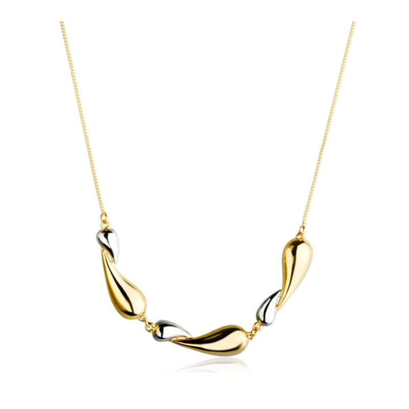 Gargantilha folheada a ouro 18k, antialérgica, com design sofisticado e moderno. Composta por elegantes pingentes em formato de gotas alternando entre banho dourado e prateado, essa peça bicolor traz um visual marcante e contemporâneo. Ideal para quem deseja um acessório versátil e refinado, que combina com produções casuais e elegantes, realçando o colo com delicadeza e brilho.
