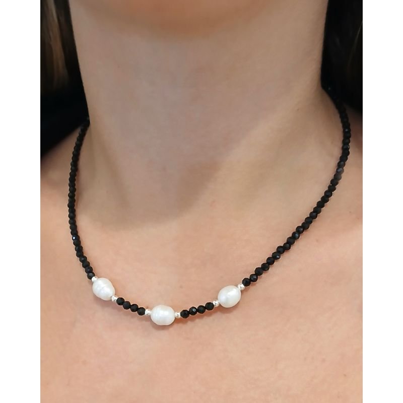 Uma combinação clássica e elegante: o poder protetor do ônix com a delicadeza e pureza das pérolas naturais.