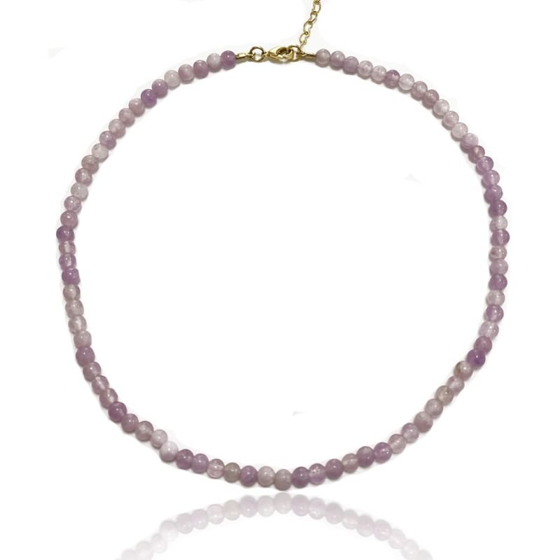 Gargantilha delicada e sofisticada, composta por pedras naturais de Jade lilás cuidadosamente lapidadas, que transmitem serenidade e elegância em cada detalhe. O fecho e os acabamentos folheados a ouro 18k conferem um toque luxuoso e atemporal, valorizando ainda mais o brilho suave das pedras. Uma peça versátil e charmosa, perfeita para realçar sua beleza tanto em produções casuais quanto em ocasiões especiais.