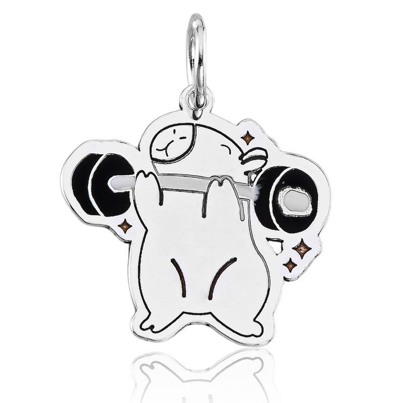 Com um toque divertido e cheio de atitude, este pingente de capivara em prata 925 traz a personagem em versão fitness, com acabamento polido e detalhes esmaltados que valorizam o design. Uma joia leve, criativa e cheia de personalidade, perfeita para quem gosta de acessórios descontraídos, mas com qualidade e estilo. Ideal para uso diário ou para presentear quem ama unir bom humor e originalidade.