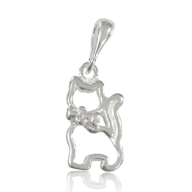 Este delicado pingente de prata 925 em formato de gatinha é puro charme e ternura. Com um design vazado e acabamento brilhante, ele traz um toque especial: um lacinho com detalhe central que adiciona ainda mais graciosidade à peça. Ideal para quem ama felinos e deseja expressar esse amor de forma elegante e discreta. Uma joia encantadora para compor colares cheios de personalidade e afeto.