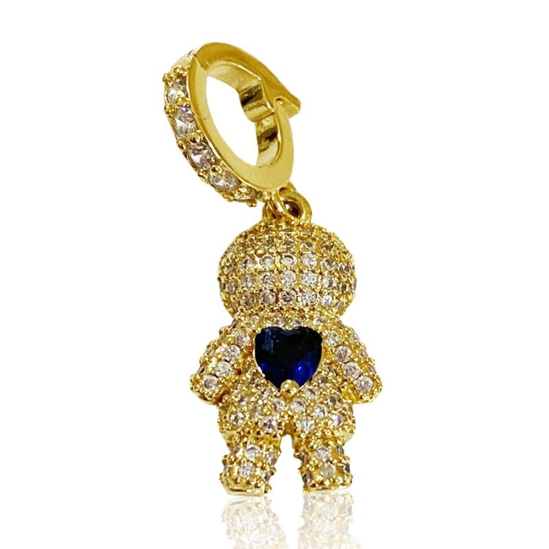 Este elegante pingente em formato de menino é folheado a ouro 18k e totalmente cravejado com microzircônias, proporcionando um brilho sofisticado e marcante. No centro, um coração azul profundo traz um toque especial de cor e simbolismo, representando amor, proteção e afeto. Uma joia cheia de significado, perfeita para eternizar vínculos familiares ou presentear com carinho e estilo.