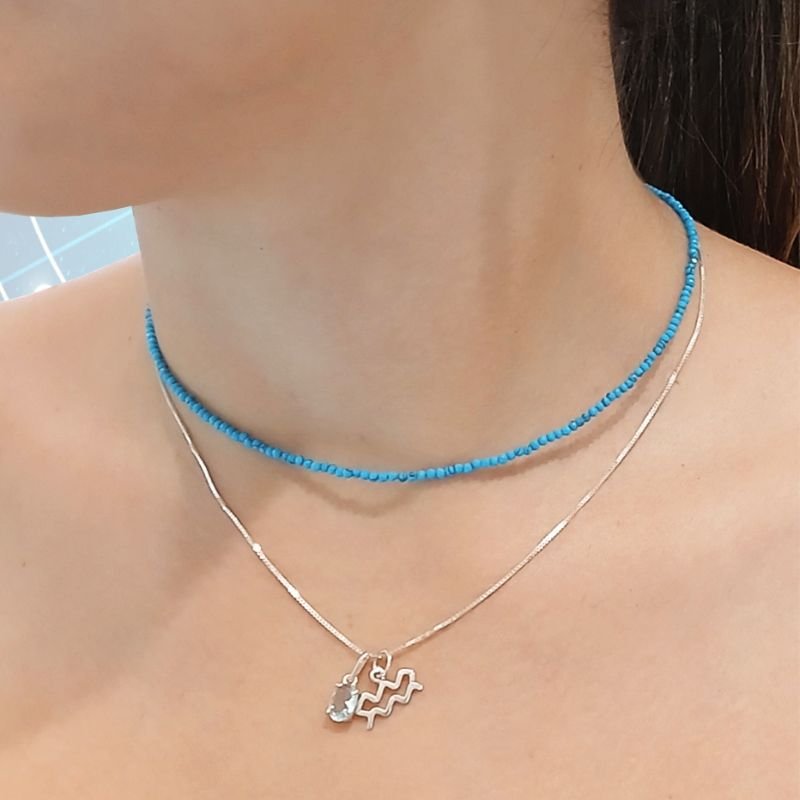 Pingente signo de Aquário em acabamento polido, com design moderno e traços geométricos que representam inovação, liberdade e originalidade — características marcantes desse signo único.